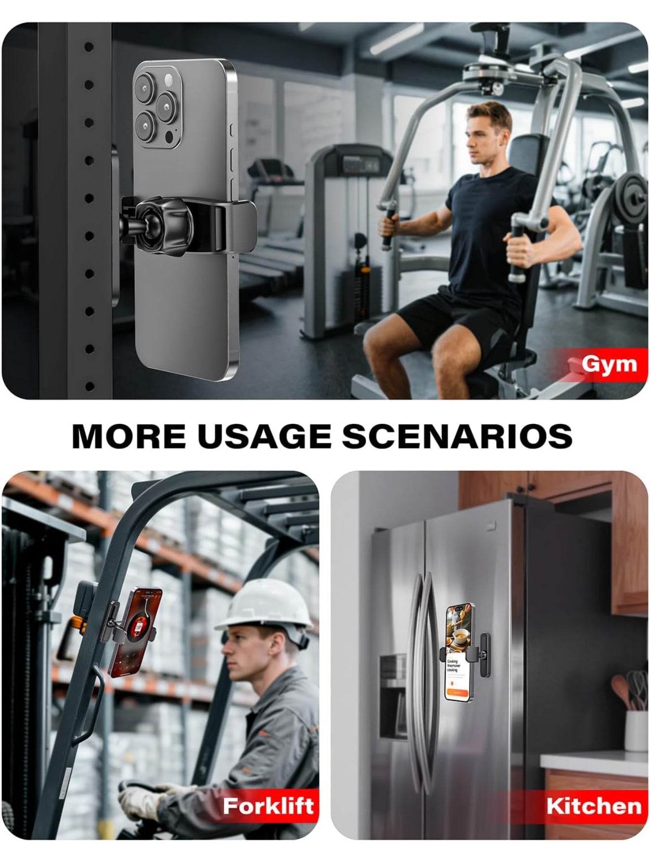 Équipé d’une rotule métallique de 17,2 mm, ce support offre une tenue ferme et durable. Il reste solidement accroché à la surface métallique que vous choisissez, sans glisser ni vibrer. Vous pouvez bouger, soulever lourd, enchaîner les exercices : votre téléphone reste parfaitement stable et sécurisé.